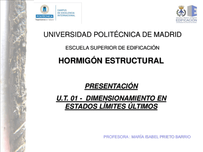 He publicado nuevos apuntes de 4º Hormigón Estructural: Presentaciones teóricas. UT.01