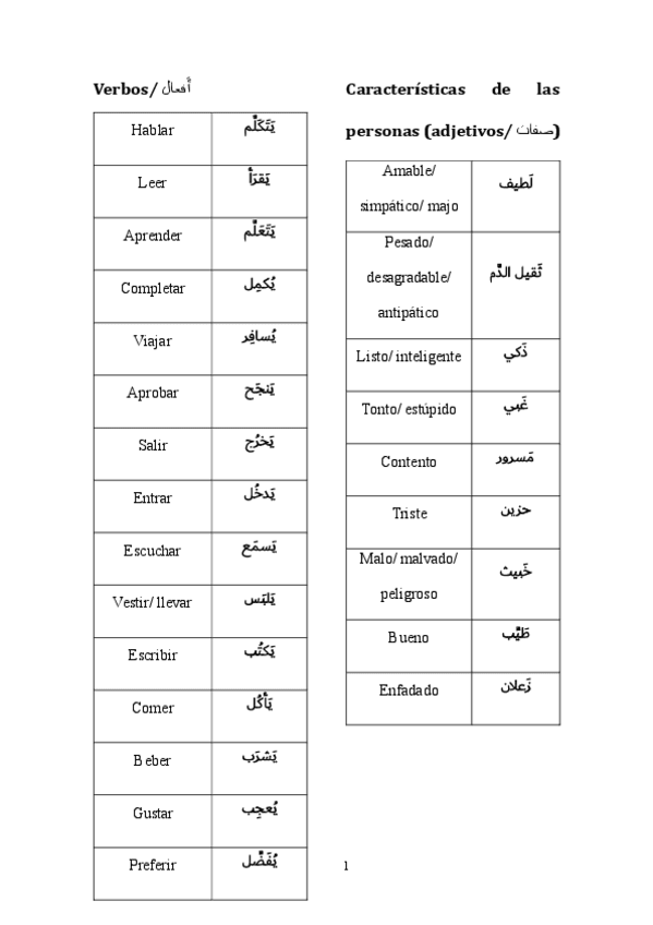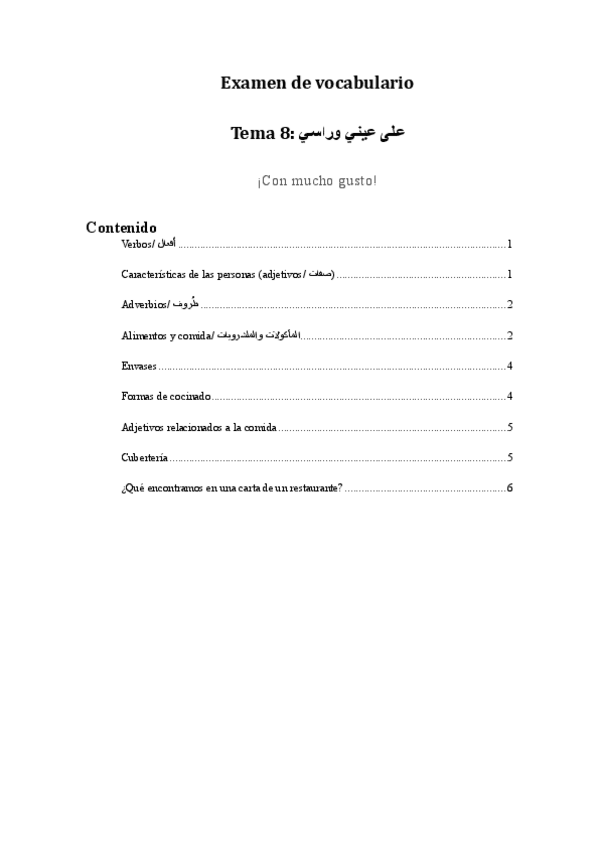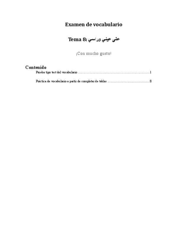 Práctica de vocabulario para el examen del tema 8 de árabe.