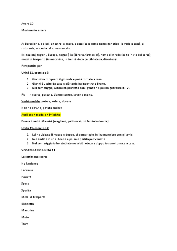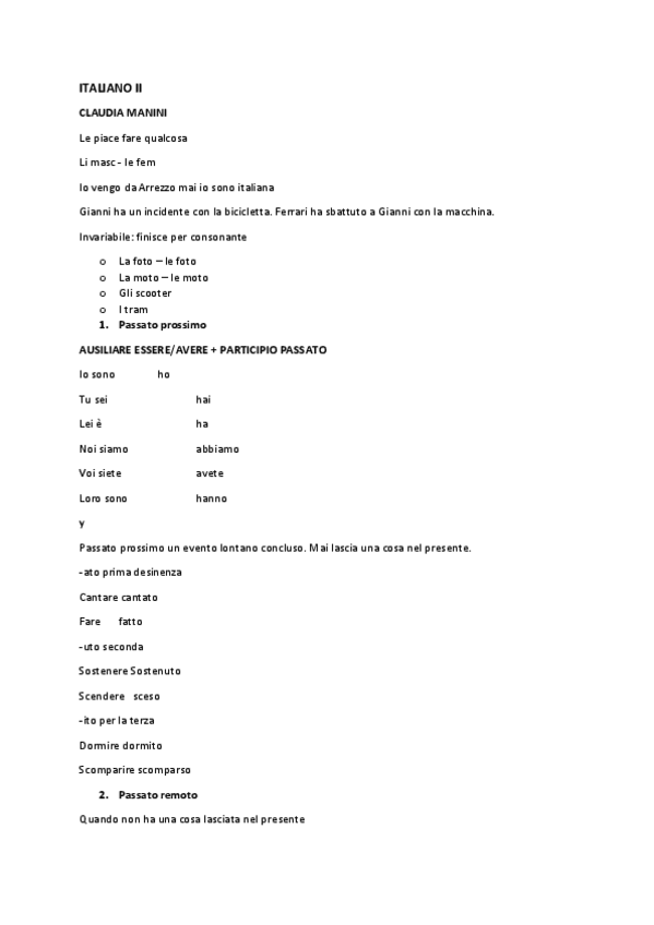 Passato prossimo, passato remoto, vocabulario, imperffeto