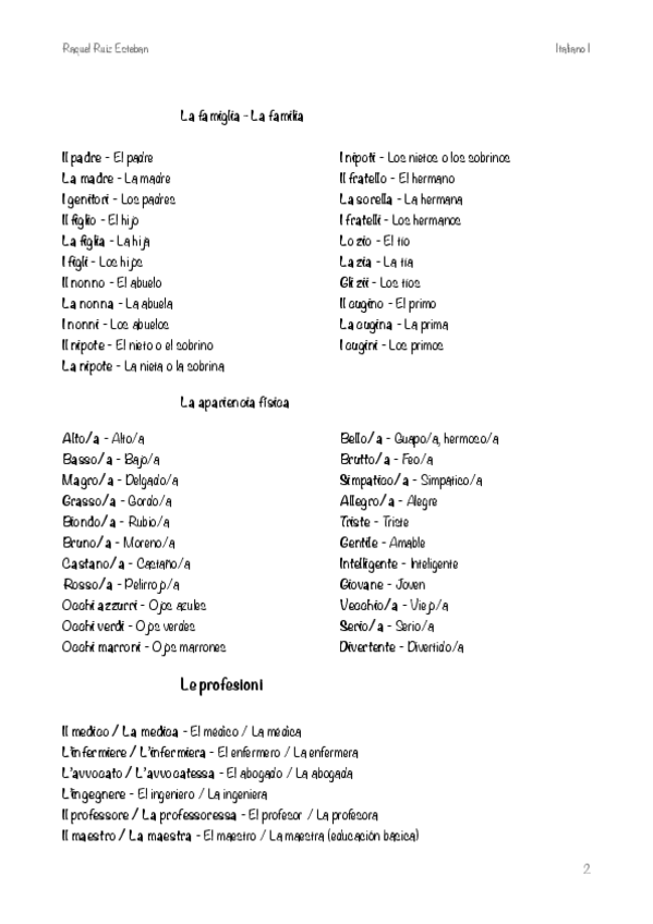 Apuntes de vocabulario de los temas 1-4 del primer cuatrimestre de italiano