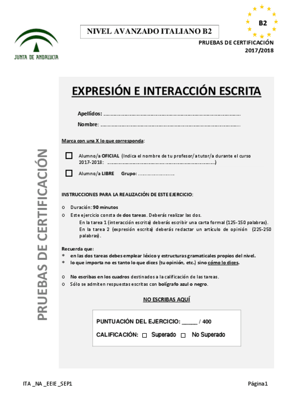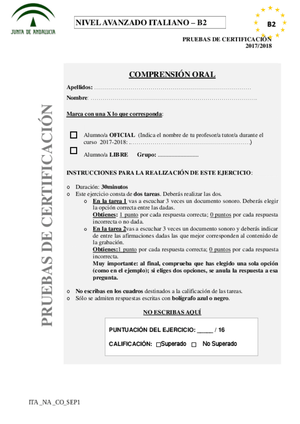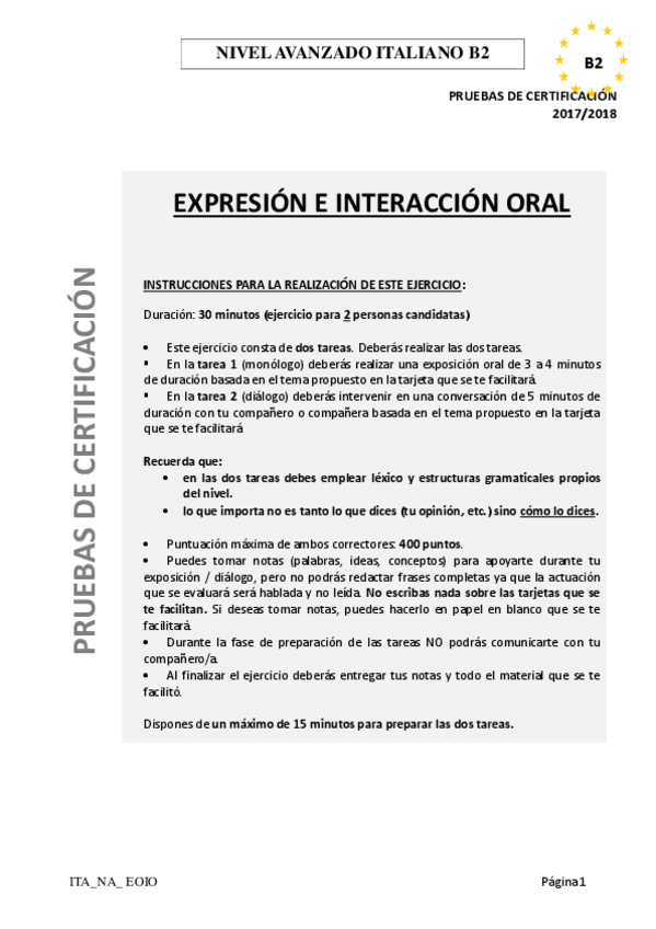 Examen B2 Italiano EOI