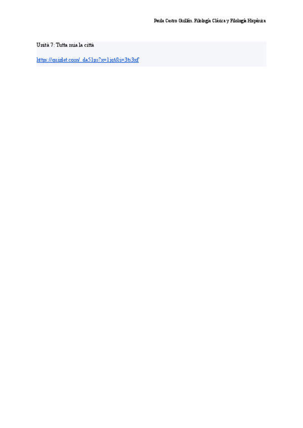 He publicado nuevos apuntes de 1º Idioma Moderno I (Italiano): Quizlet: Unità 7- Tutta mia la città.pdf