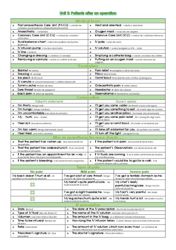He publicado nuevos apuntes de 1º Idioma Moderno I: Tema 2- caring for patients after an operation