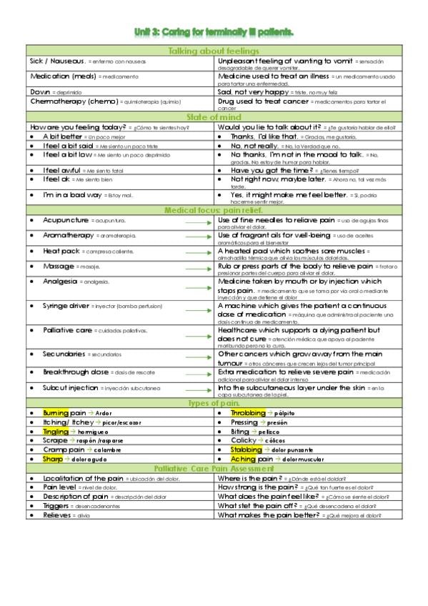 He publicado nuevos apuntes de 1º Idioma Moderno I: Tema 3- caring for terminally ill patients