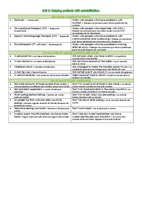 He publicado nuevos apuntes de 1º Idioma Moderno I: Tema 5- helping patients with rehabilitation
