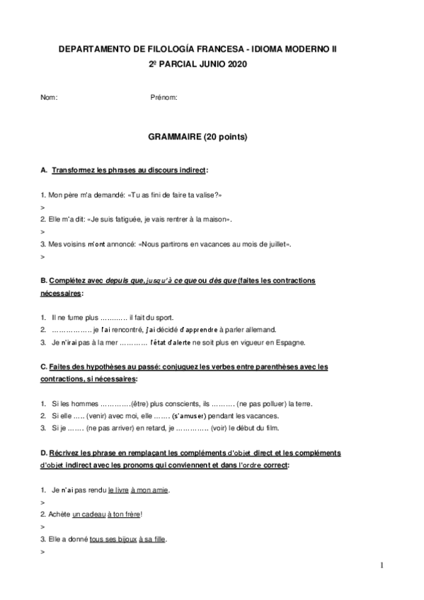 He publicado nuevos examenes de 2º Idioma Moderno II (Francés): GrammaireM1.docx