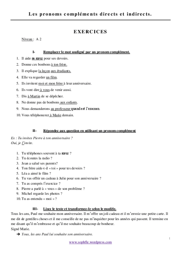 He publicado nuevos ejercicios de 2º Idioma Moderno II (Francés): EXERCISES COD et COI