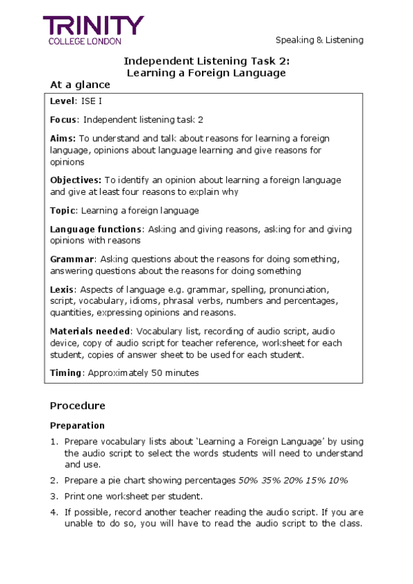 TRINITY ISE I exámenes con respuesta