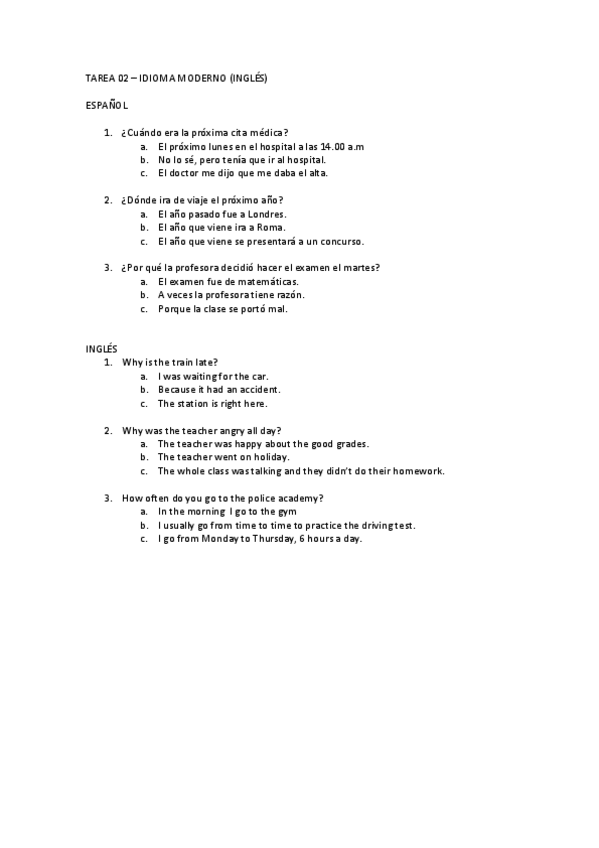 TAREAS DE IDIOMA MODERNO