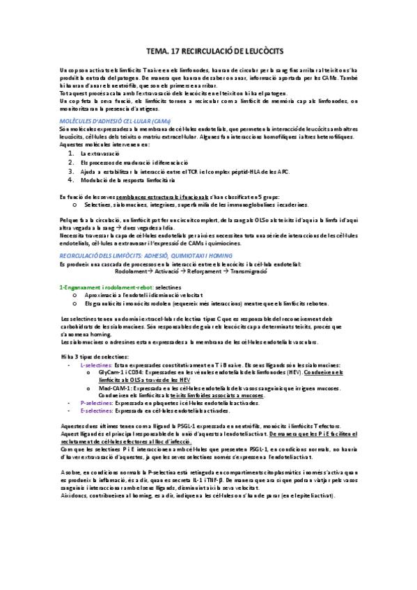 He publicado nuevos apuntes de 3º Immunologia: T.17-Circulacio-limfocits-resum.pdf