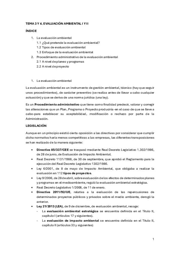 TEMA 1-HISTORIA Y MARCO LEGAL DE LA EVALUACION DE IMPACTO AMBIENTAL (EIA) Resumido