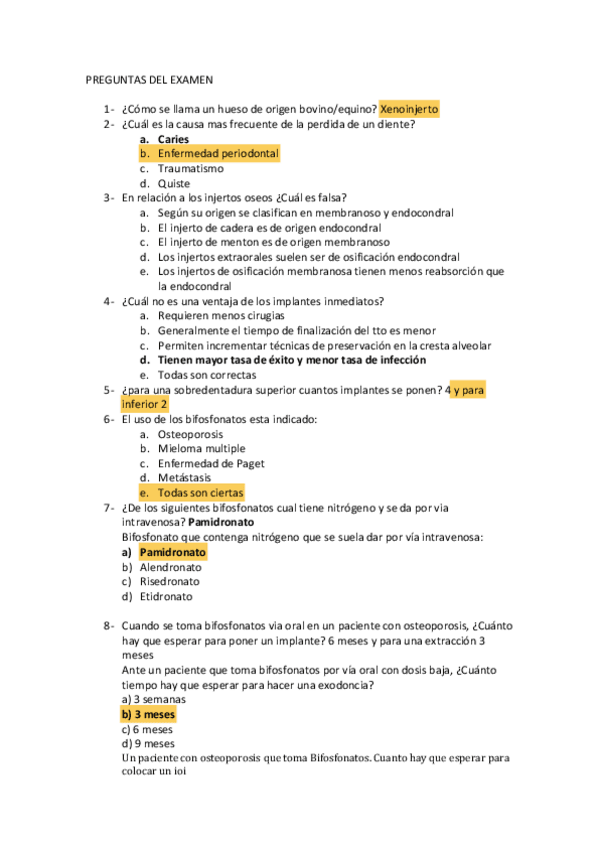 Exámenes Implantología