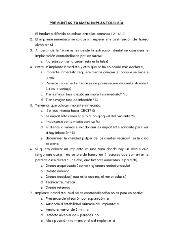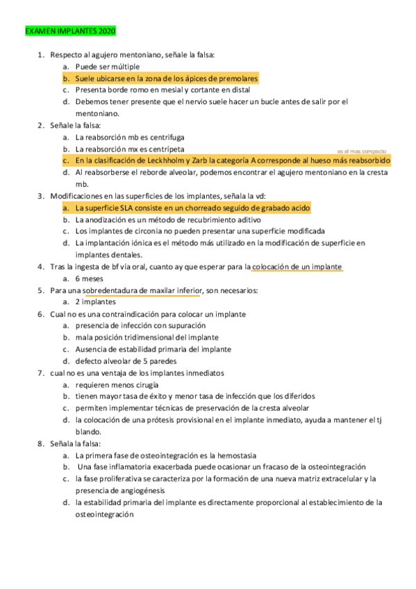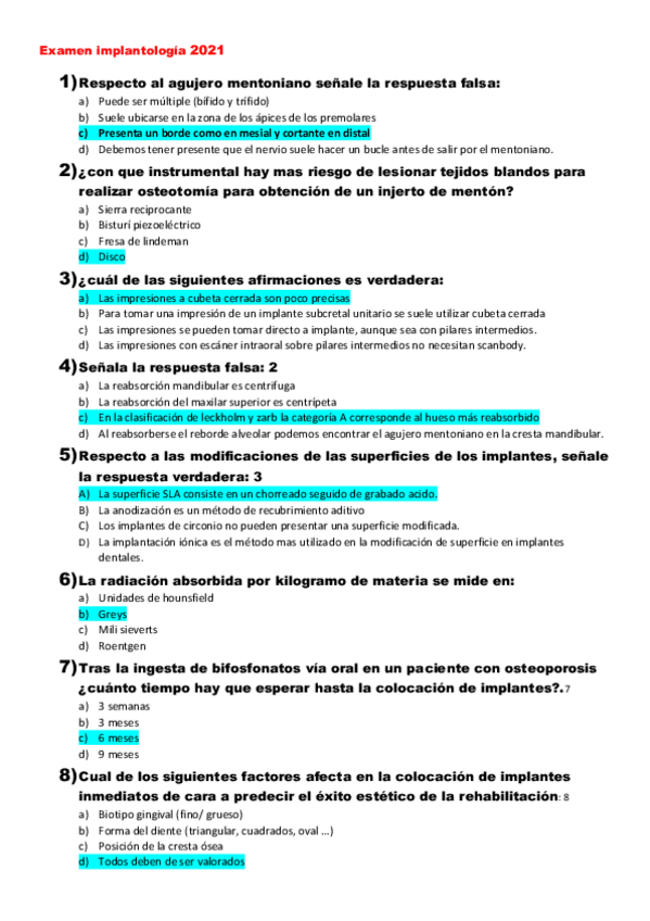 Exámenes Implantología