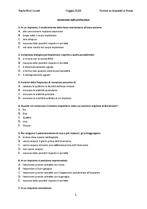 Domande protesi su impianti