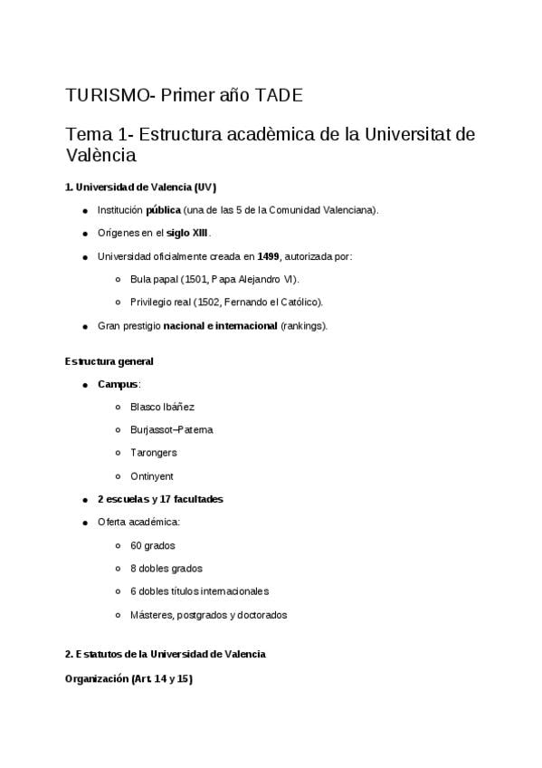 He publicado nuevos apuntes de 1º Incorporación a los estudios de Turismo: ORGANIGRAMA UV (1)