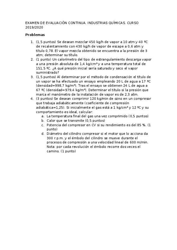 He publicado nuevos examenes de 4º INDUSTRIAS QUÍMICAS: EXÁMENES INDUSTRIAS