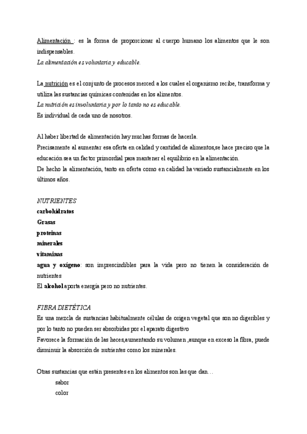 Resúmenes temas: - 1 concepto de salud - 2 alimentación, generalidades e ideas previas - 3 Carbohidratos - 4 Grasas - 5 Proteínas