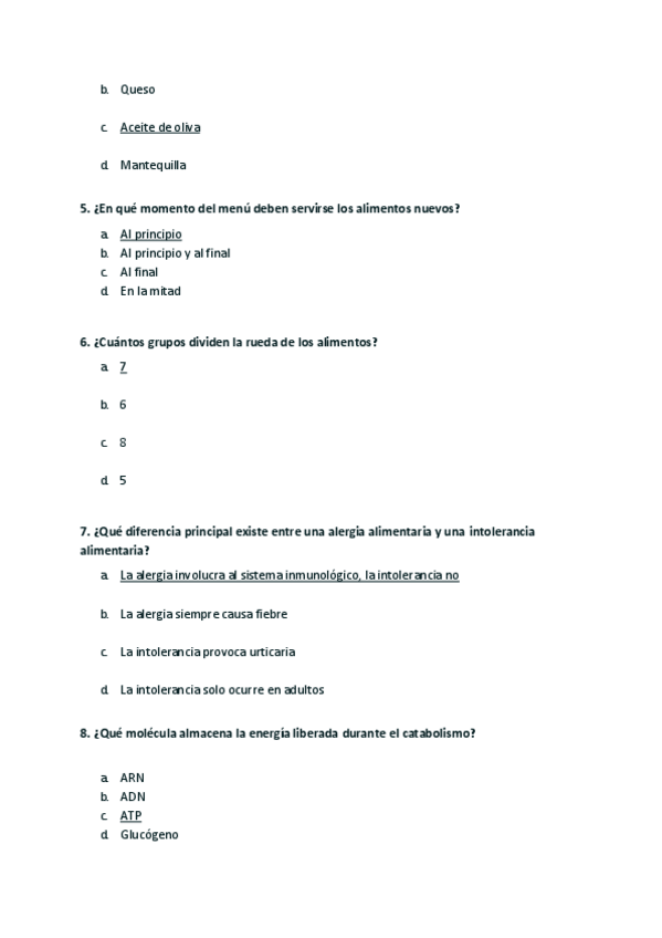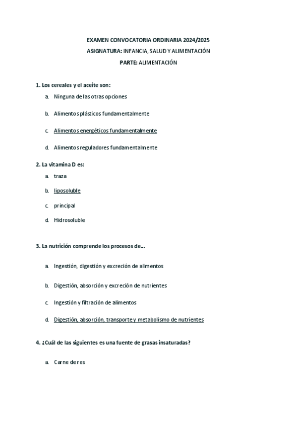 Examen solo de la parte de Alimentación, segundo semestre de la convocatoria ordinaria del curso 2024/2025.