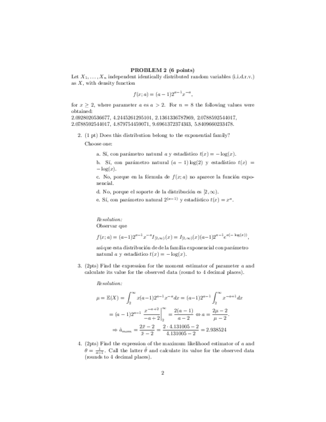 He publicado nuevos examenes de 2º Inferencia Estadística: Parcial.pdf