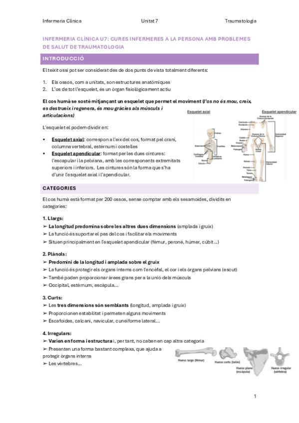 Unitat temàtica 7: Cures infermeres a la persona amb problemes de salut traumatològics