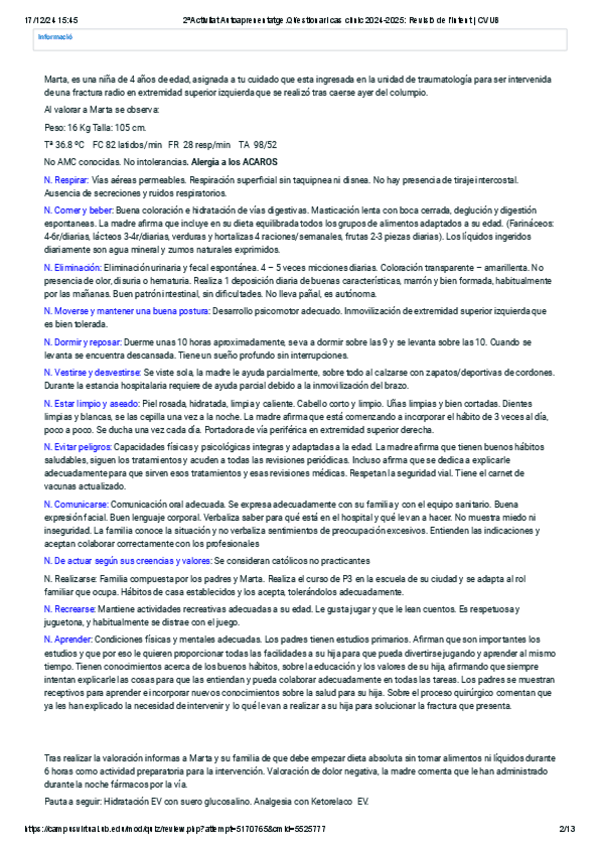 He publicado nuevos ejercicios de 4º Infermeria de la infància i l'adolescència: 2aActivitat-Autoaprenentatge.Questionari-cas-clinic-2024-2025.pdf