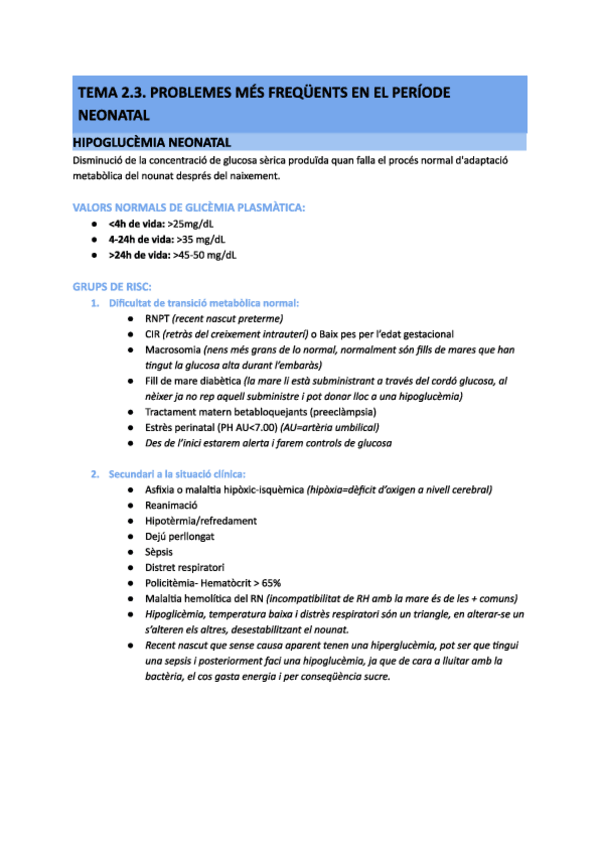 Aspectes generals, introducció nounat d'alt risc, problemes més freqüents