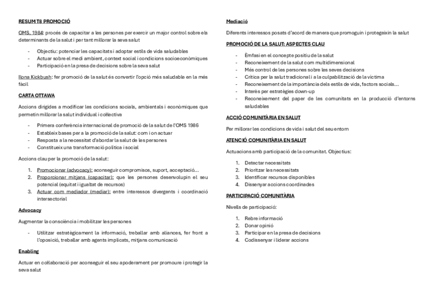 He publicado nuevos apuntes de 1º Infermeria de salut pùblica i comunitària: RESUM-T8-PROMOCIO.pdf
