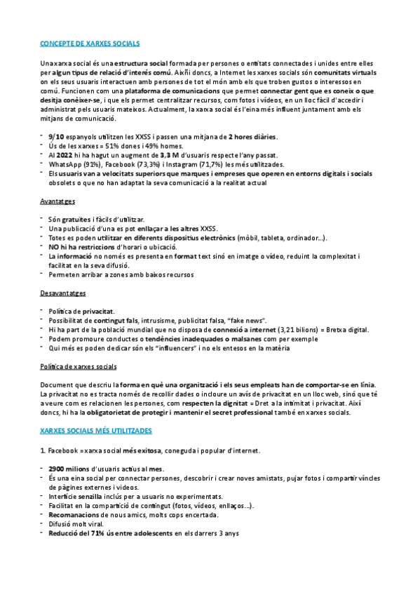 Apunts complets del seminari Xarxes socials i Salut per respondre el test avaluatiu 2n infermeria UB