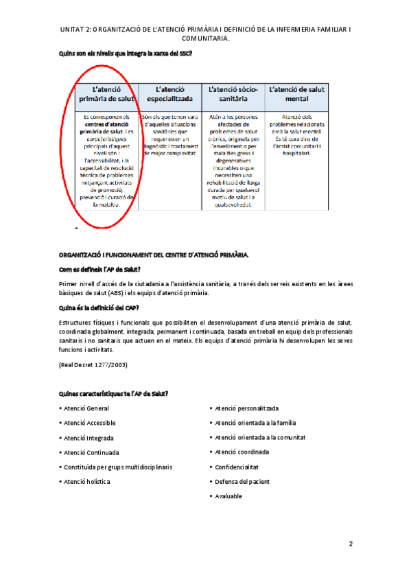 Tema 2 - Organització d'AP i definició infermeria familiar i comunitària