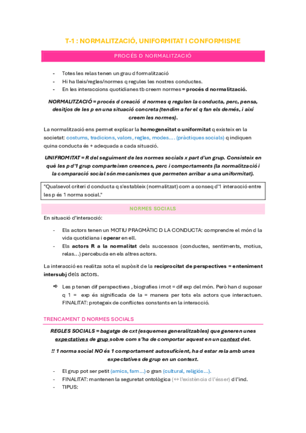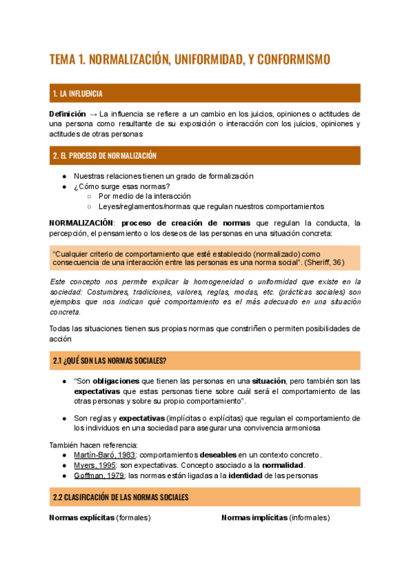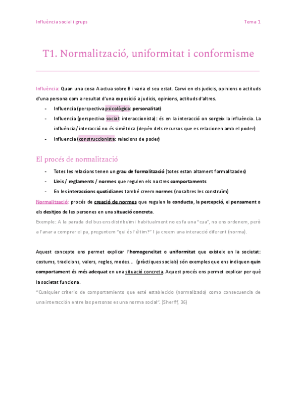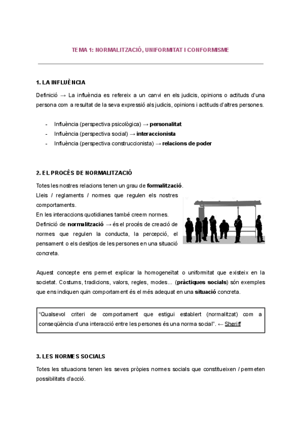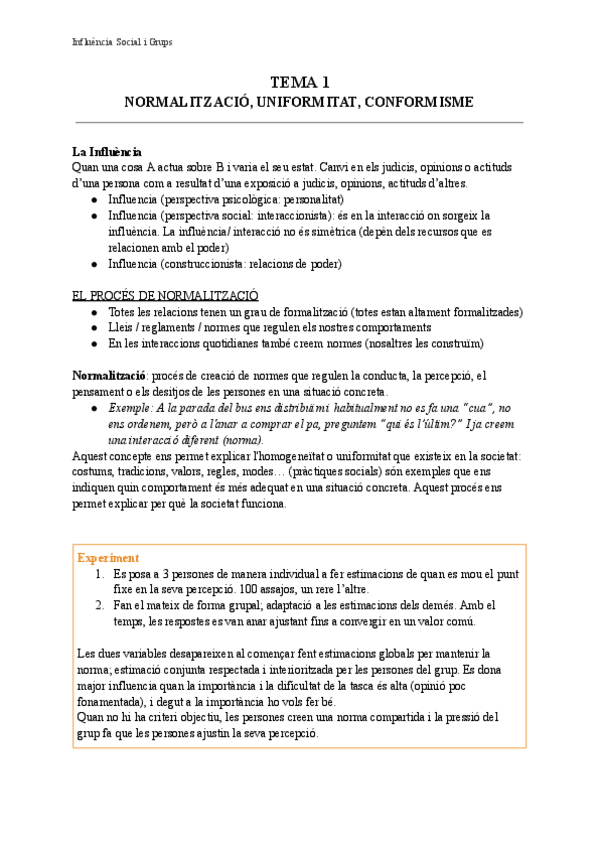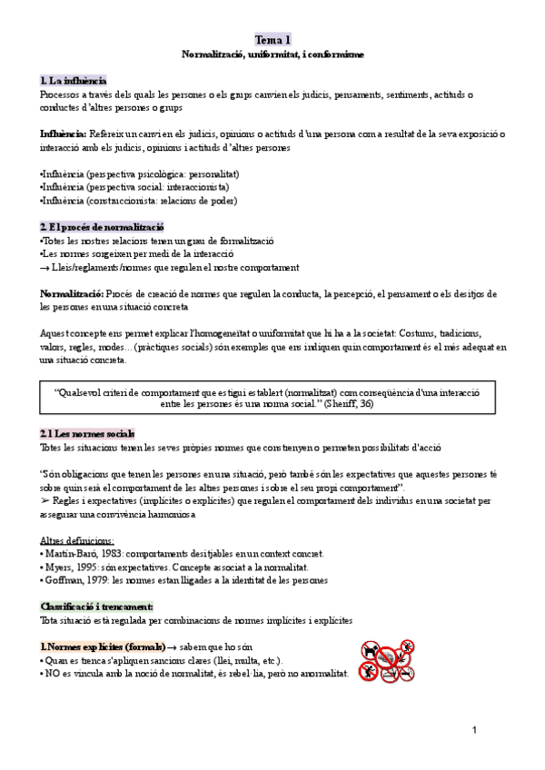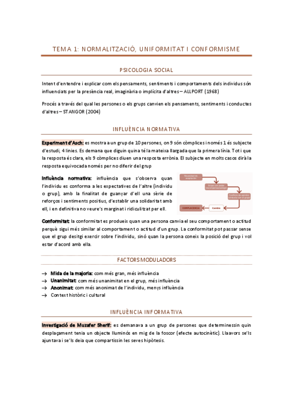 Tema 1 Influència Social i Grups; Normalització, conformitat i conformisme