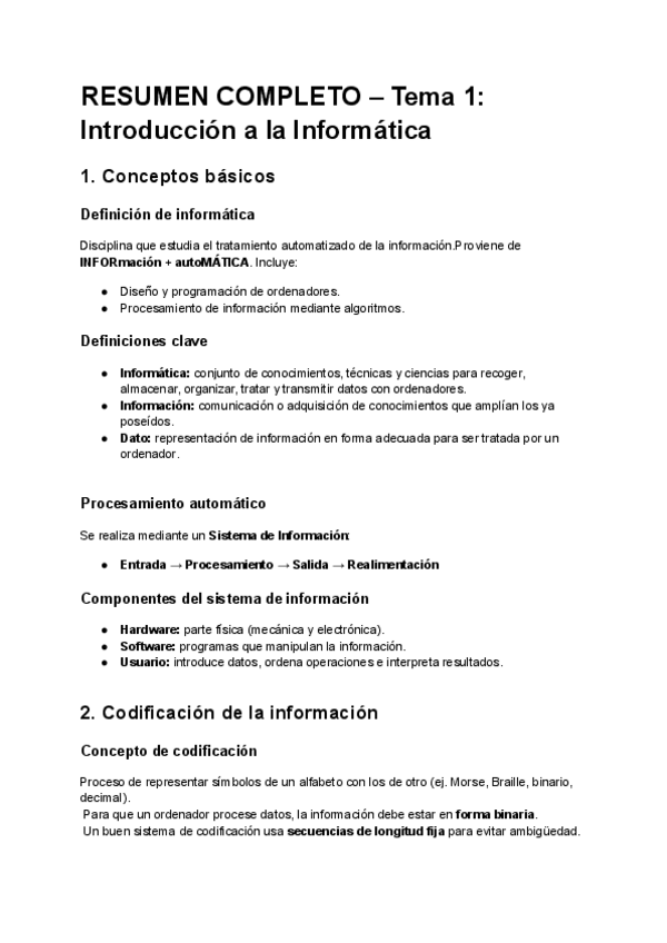 Esto es el Temario de informatica del primer parcial en un solo documento, son unos apuntes un poco mas simplificados. Del curso 25/26. Espero que les sirva