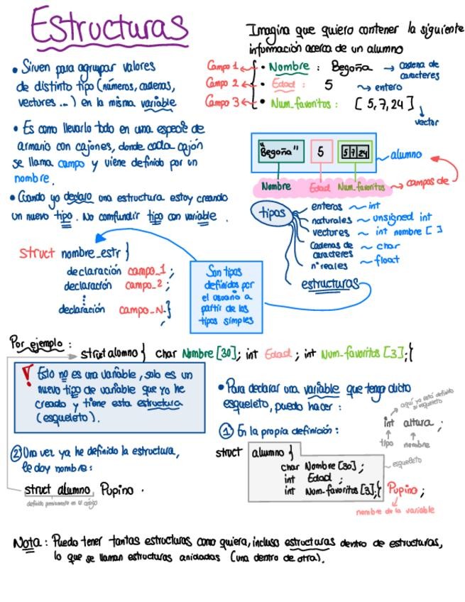 Resumen básico para saber cómo y cuándo utilizar punteros, arrays y estructuras.