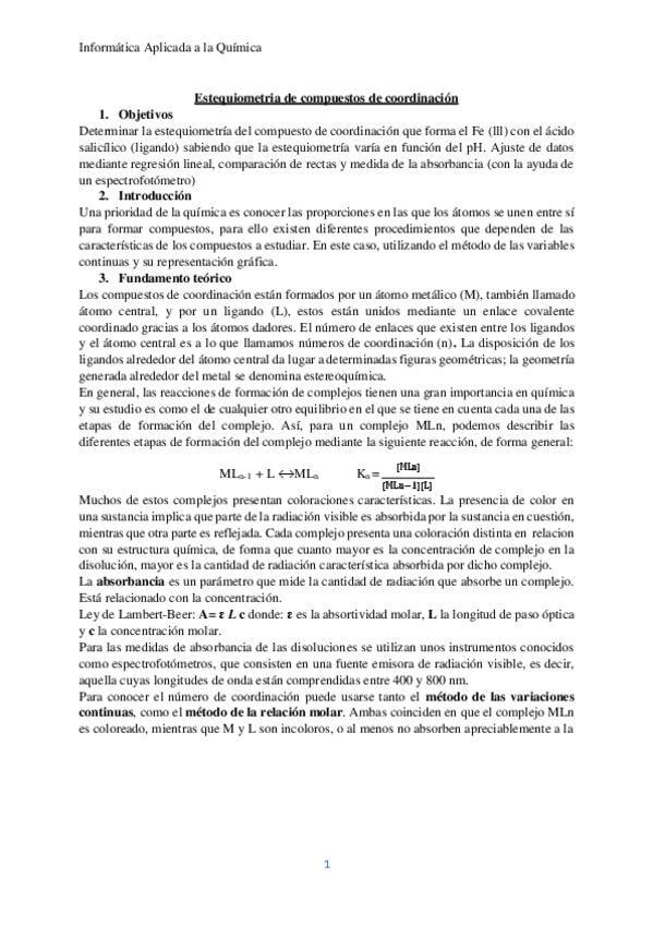 He publicado nuevos apuntes de 1º Informática Aplicada a la Química: INFORME-ESTEQUIOMETRIA-DE-COMPUESTOS-DE-COORDINACION-CLM.pdf
