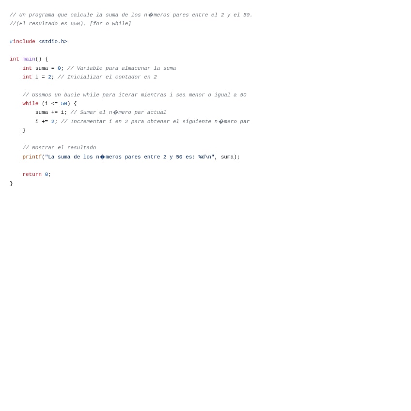 ej17calcular-la-suma-de-pares-entre-2-y-50-MATEO-MORONO-SOUTO.cpp