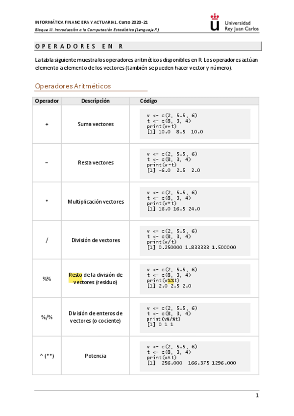 He publicado nuevos apuntes de 1º Informática Financiera y Actuarial: OperadoresR.pdf