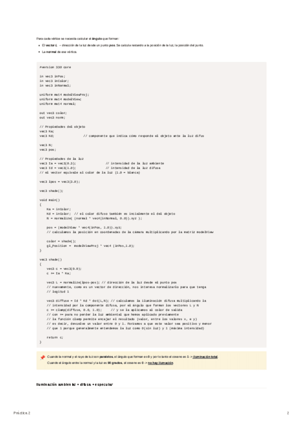 He publicado nuevos apuntes de 2º Informática Gráfica: Apuntes-Iluminacion-en-GLSL.pdf