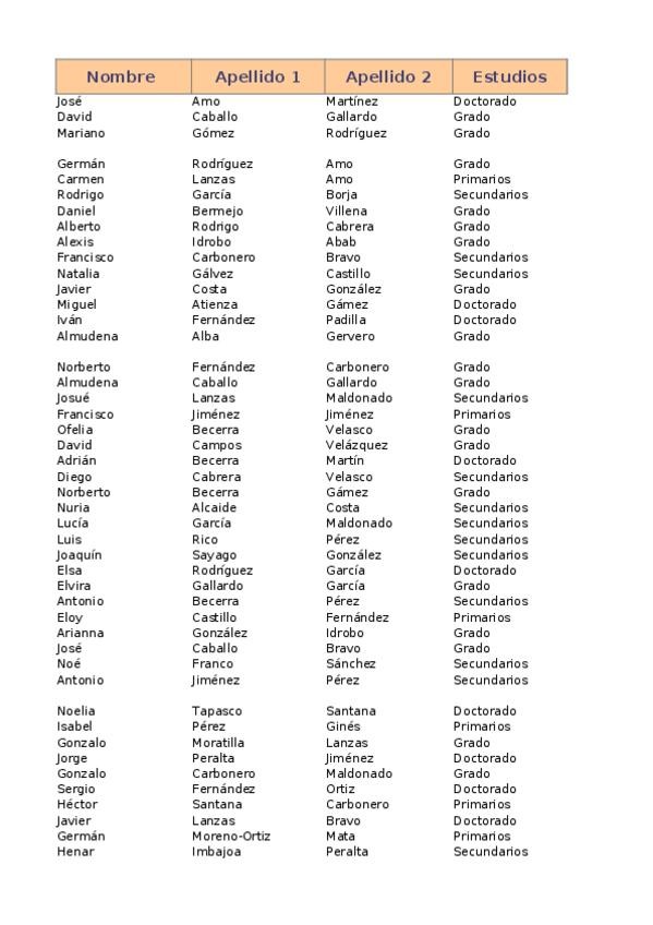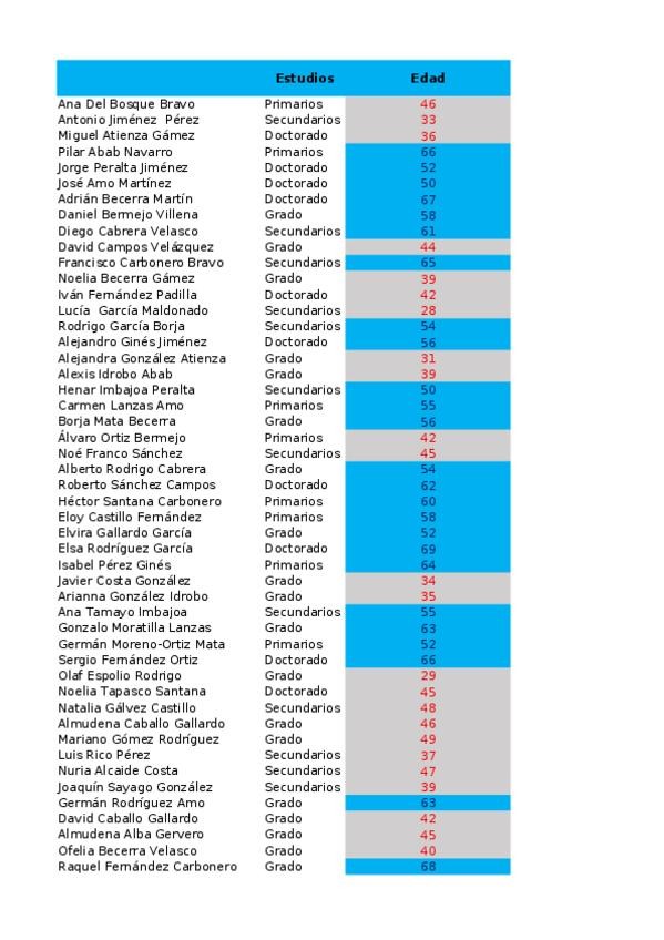 He publicado nuevos practicas de 1º Informática jurídica básica: Trabajadores.xlsx