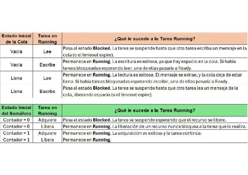 Tabla resumen para el ejercicio de tareas de los exámenes, siempre cae este tipo de ejercicios