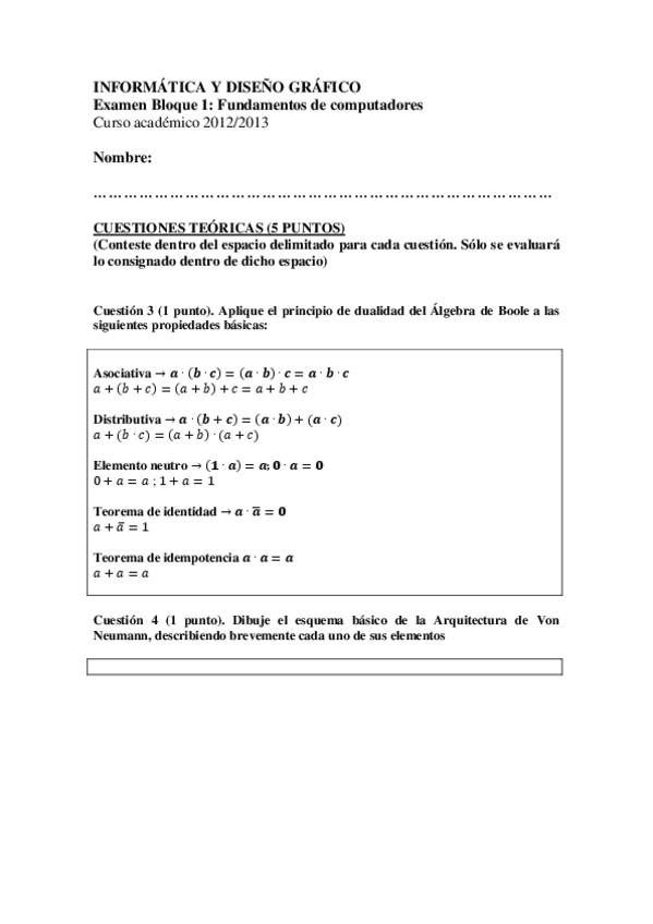 He publicado nuevos examenes de 1º Informática y Diseño Gráfico: Examen 2012-2013 resuelto.pdf
