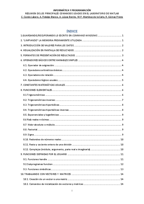 He publicado nuevos apuntes de 1º Informática y Programación: EJERCICIOSMATLAB.PDF