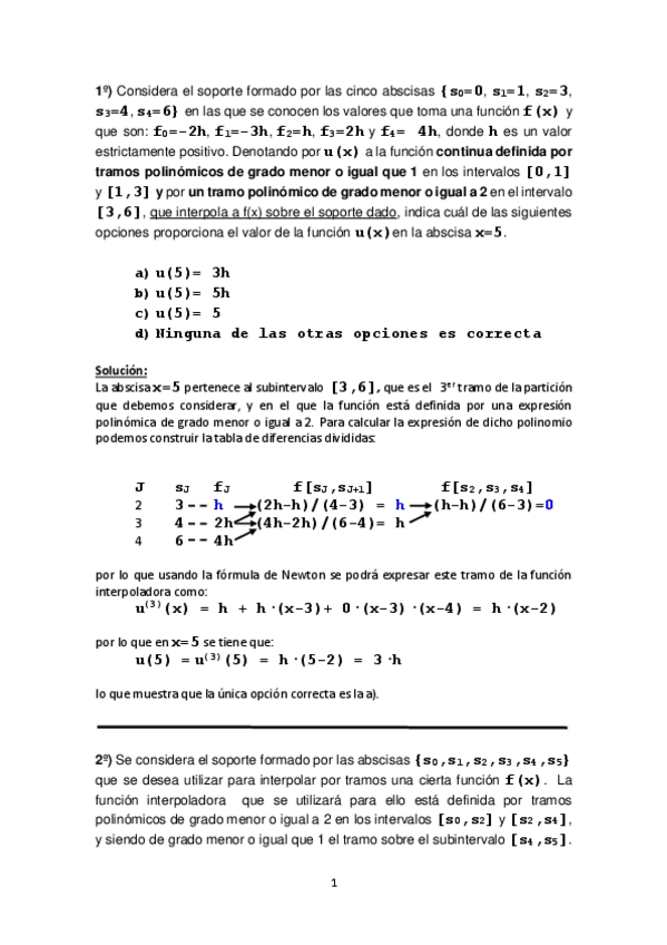 Ejercicios resueltos de interpolación a tramos 2 parcial numérico.