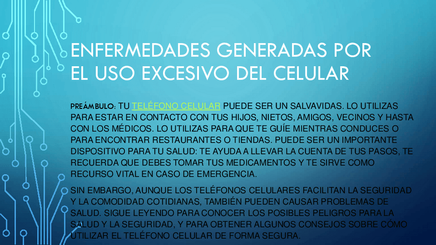 DIAPOSITIVAS SOBRE LAS ENFERMEDADES GENERADAS POR EL EXCESIVO USO DE LA TECNOLOGÍA