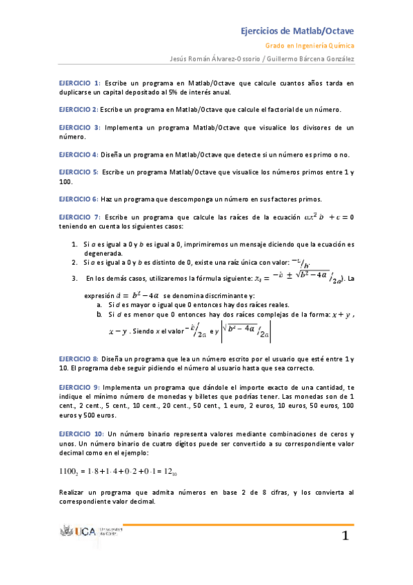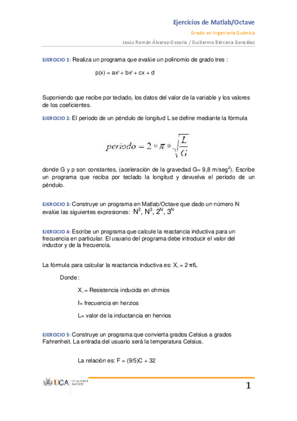 TEMA 2 OCTAVE I. EJERCICIOS RESUELTOS