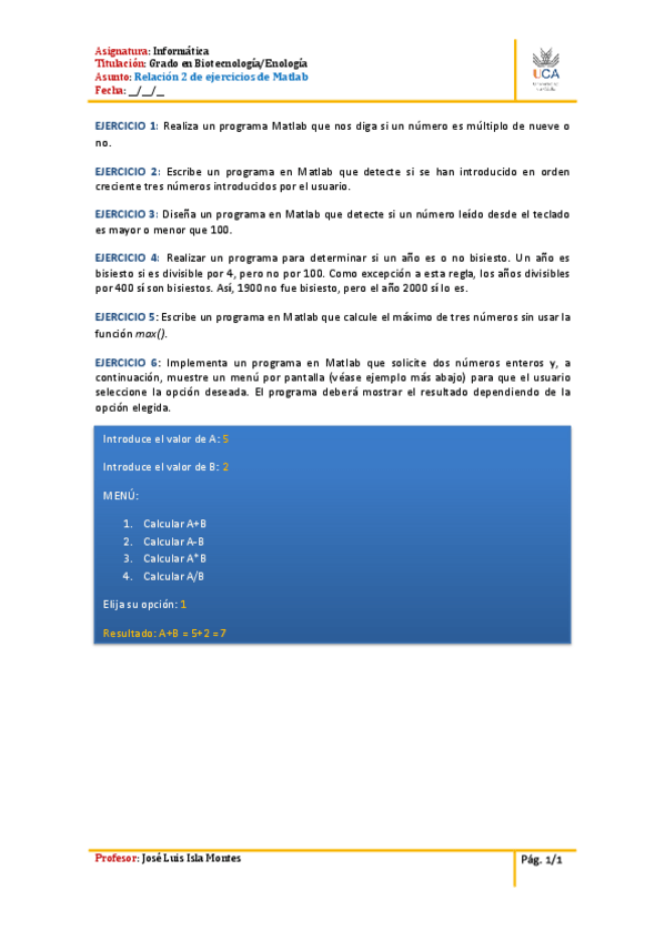 He publicado nuevos practicas de 2º Informática: Ejercicios Matlab 7.0