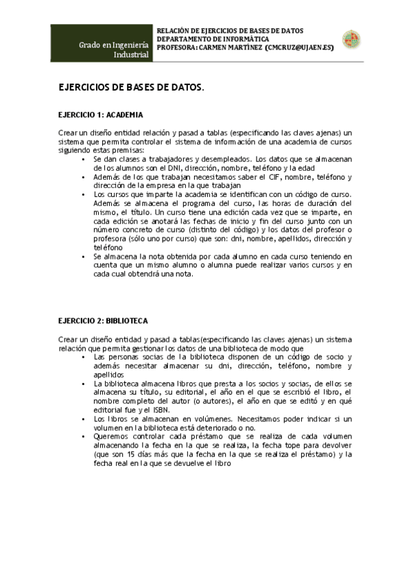 He publicado nuevos ejercicios de 1º Informática: BasesDatosEjerciciosSencillos.pdf