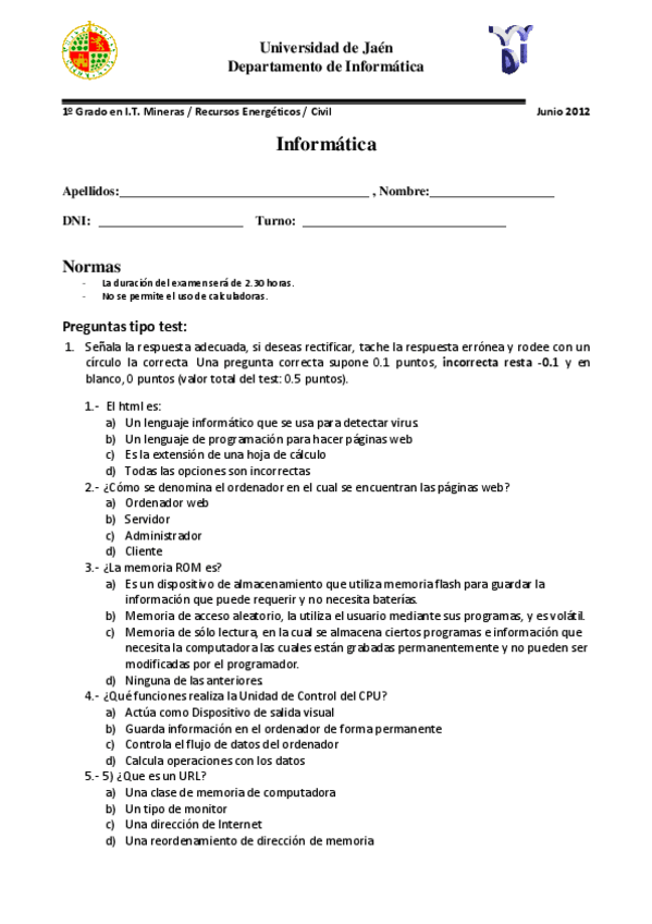 He publicado nuevos examenes de 1º Informática: examenInformaticajunio2012-2.pdf