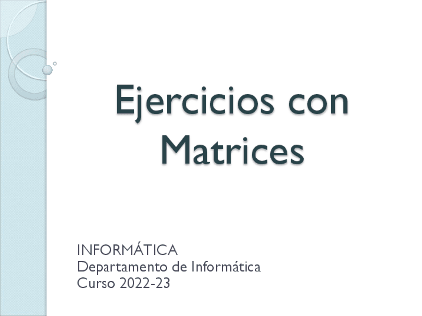 He publicado nuevos ejercicios de 1º Informática: EjerciciosMatrices.pdf