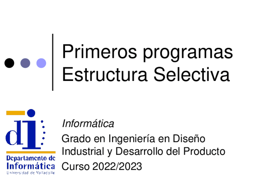 He publicado nuevos apuntes de 1º Informática: Primeros-programas-Estructura-Selectiva.pdf