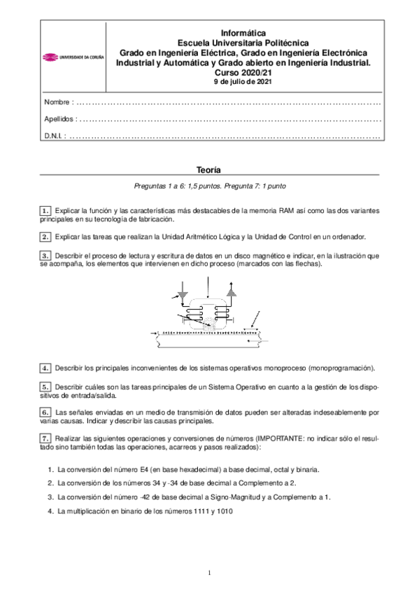 He publicado nuevos examenes de 1º Informática: ExaJulioELEEYA2021.pdf