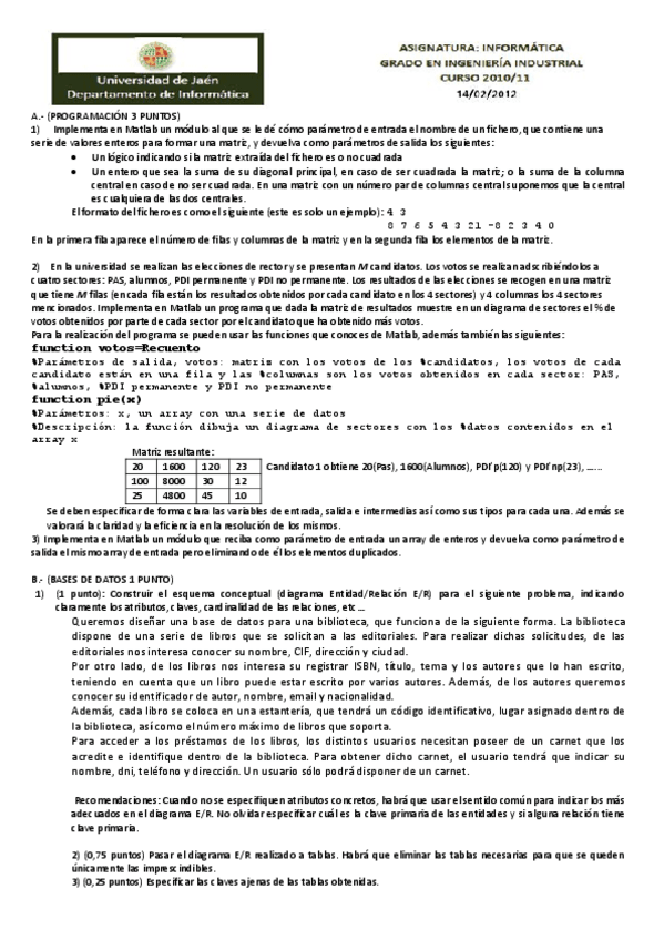 He publicado nuevos apuntes de 1º Informática: SOLUCIÓN EXAMEN 2014